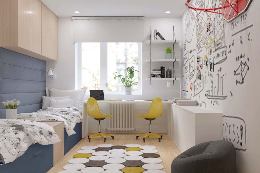 При этом следует руководствоваться габаритами помещения, стилевыми предпочтениями, но не стоит забывать учитывать мнение самих школьников, ведь именно им предстоит каждый день проводить в комнате свое свободное от учебы время.