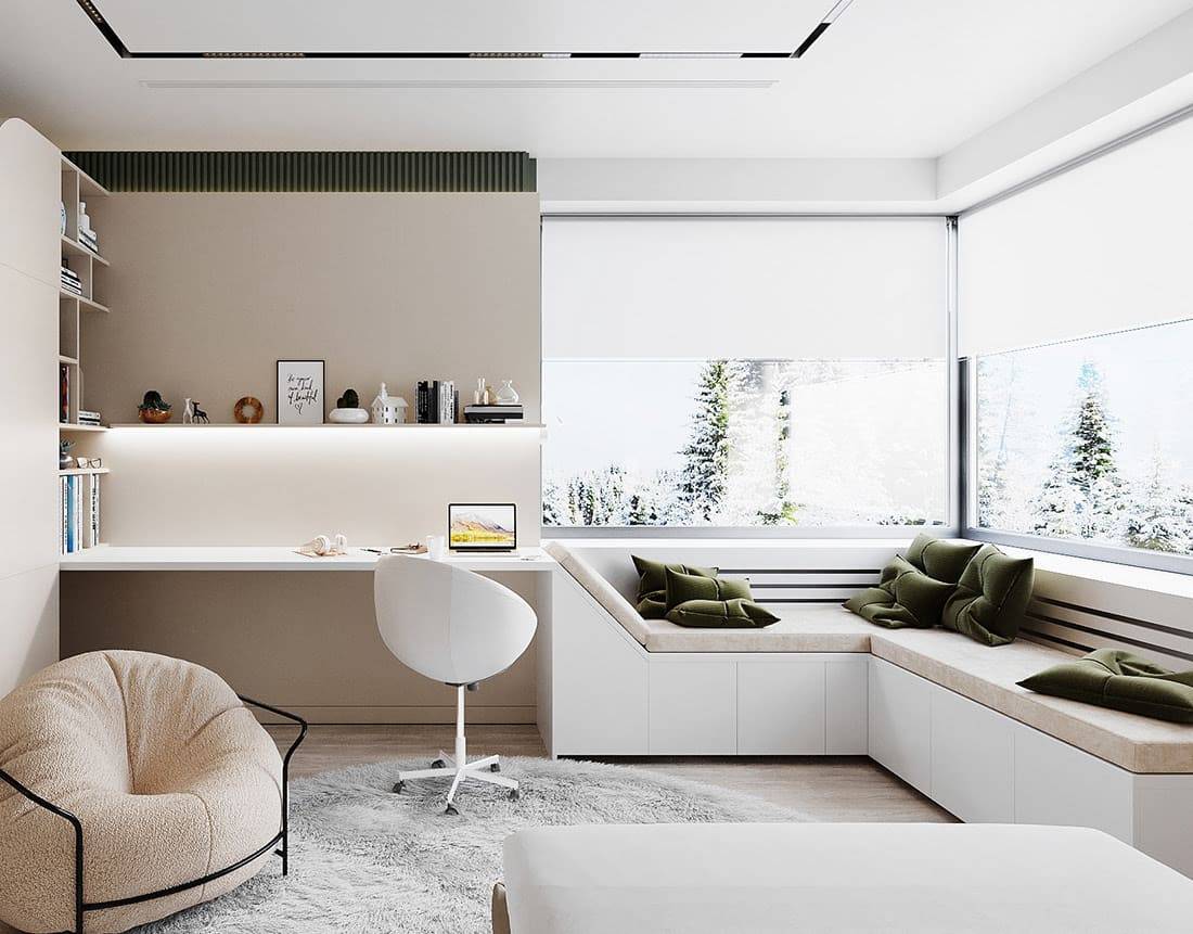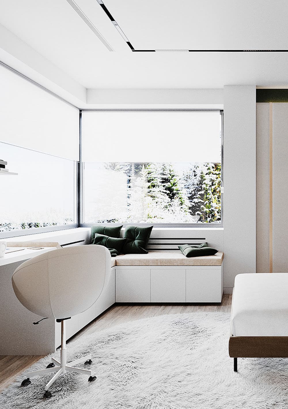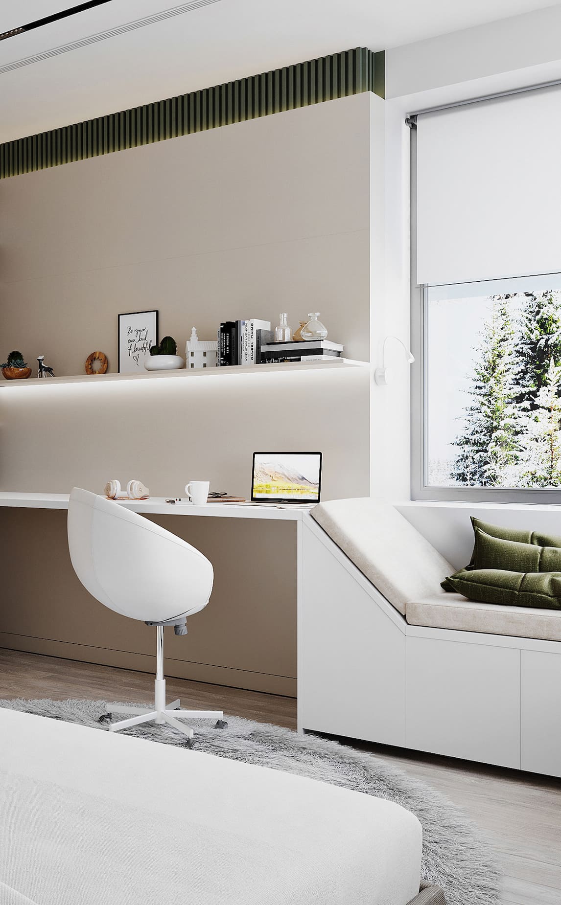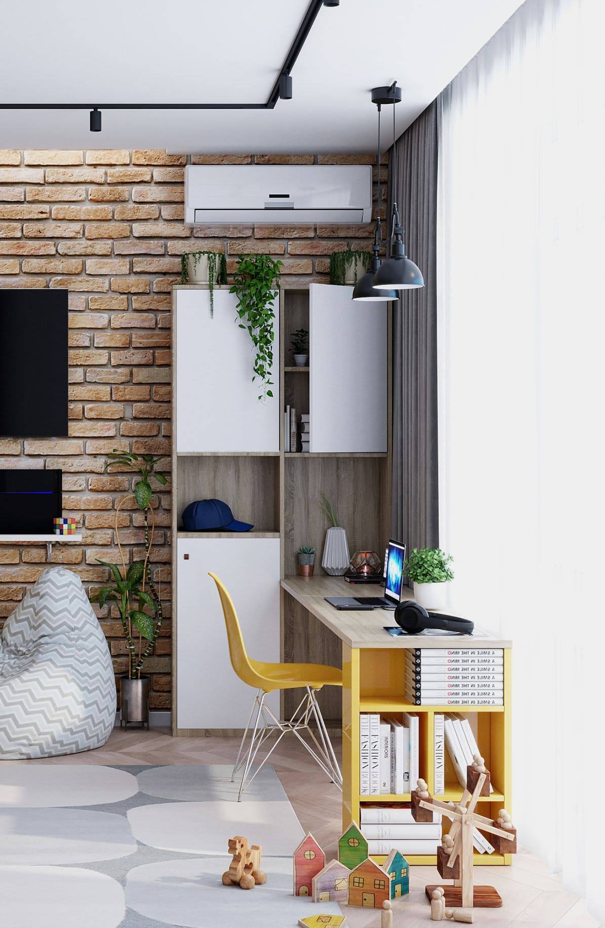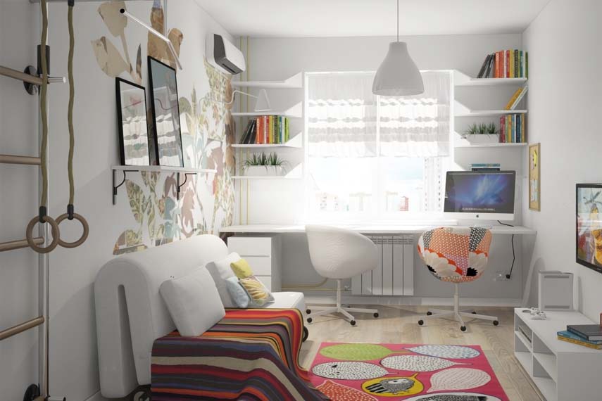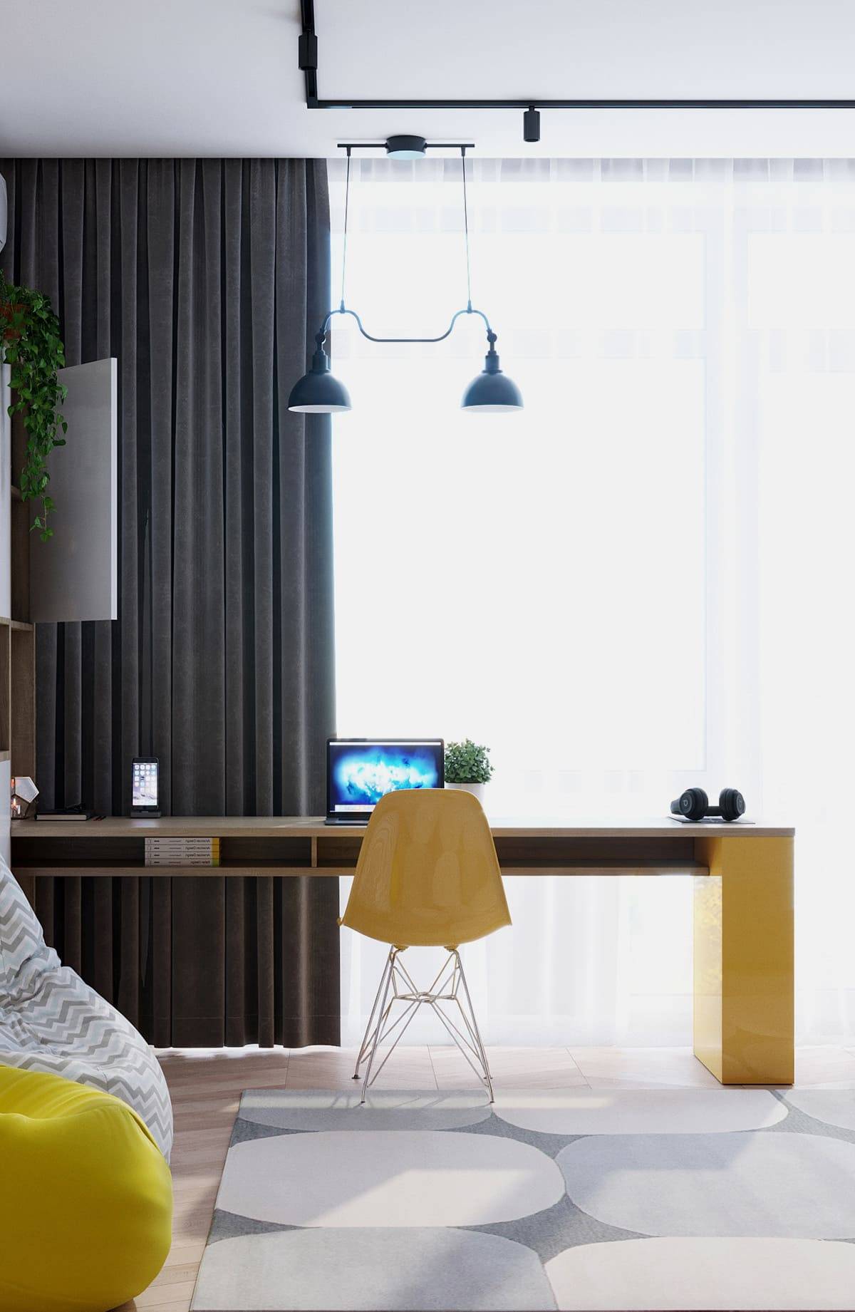 Смело устанавливайте рабочие зоны возле окон, потому что это делает комнату уютной, удобной и оригинальной.