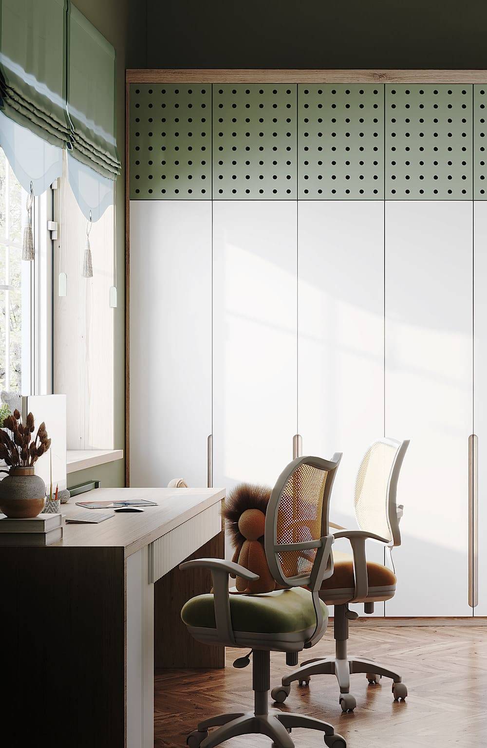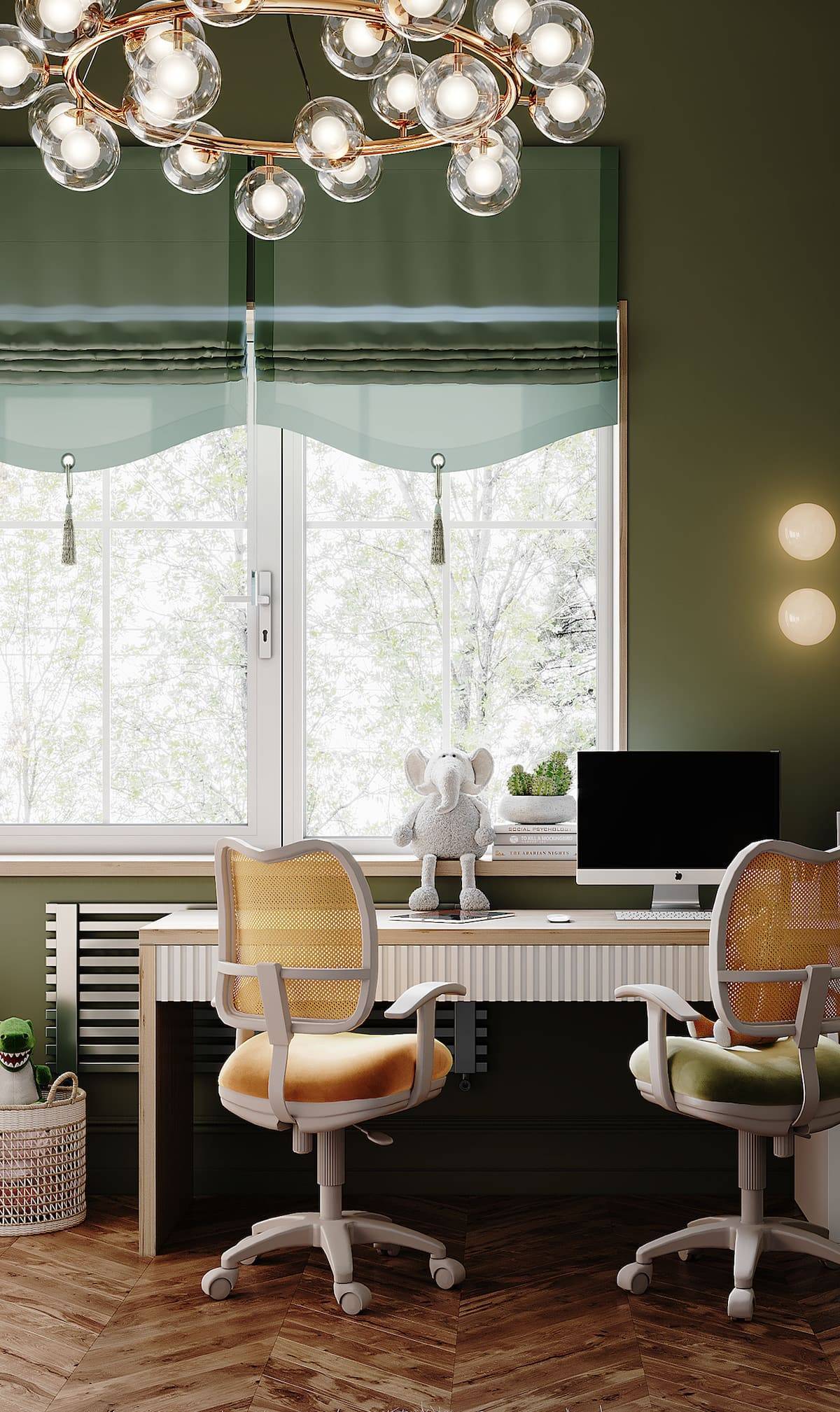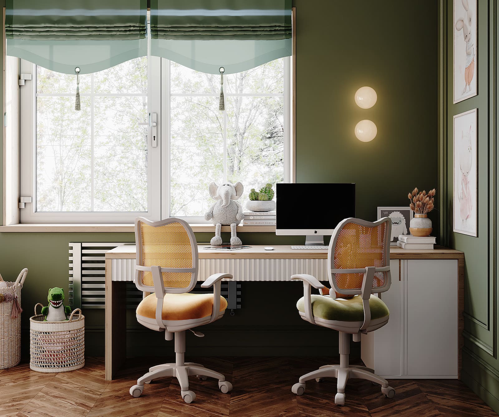 Когда у вас двое детей, и они живут в одной комнате, место у окна идеально подходит для размещения общего рабочего места. Главное, учитывать размер комнаты, чтобы каждому ученику было достаточно места для занятий и хранения своих личных вещей.