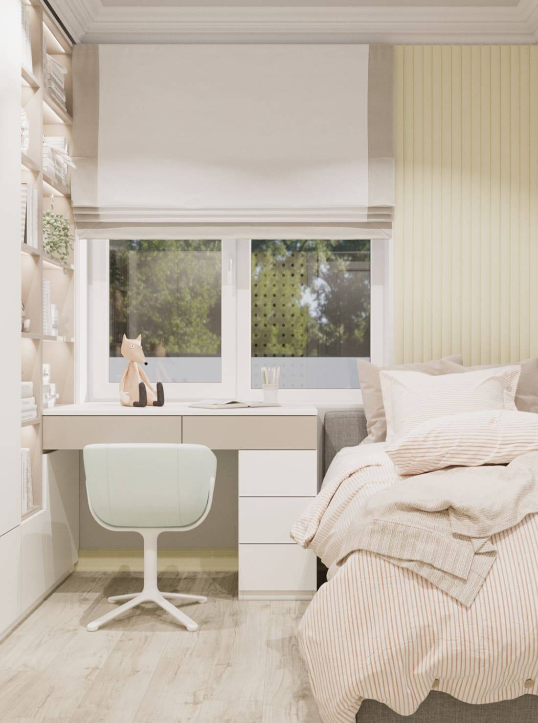 Надеемся, что наши советы помогут вам создать красивый интерьер детской комнаты и удачно расположить рабочую зону школьника возле окна.