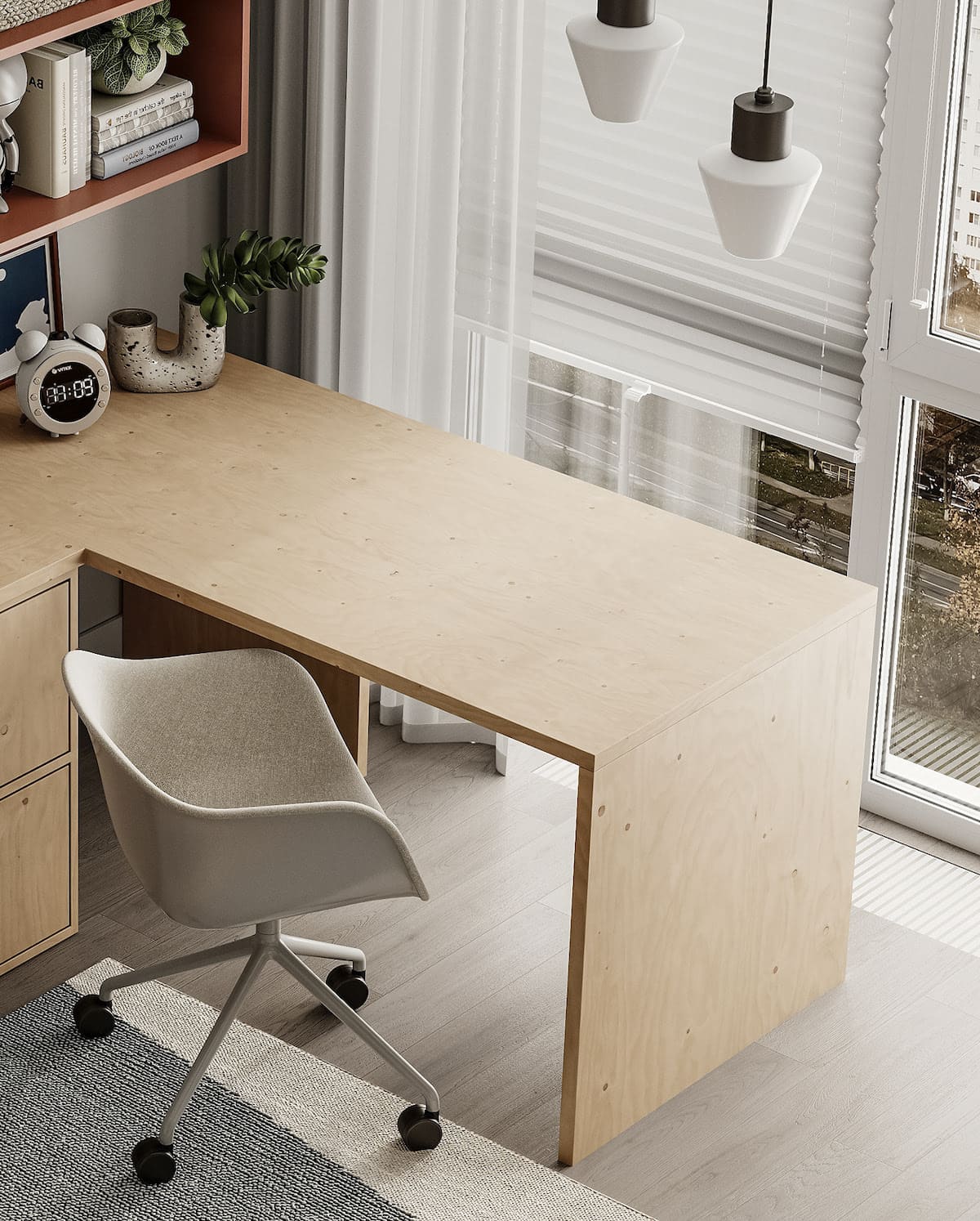 Отличным выбором станет угловой стол или модели с тумбами. Встроенные полки и стеллажи сделают пространство более функциональным. Ребенок не будет отвлекаться, чтобы достать книгу из ящика на другом конце комнаты.