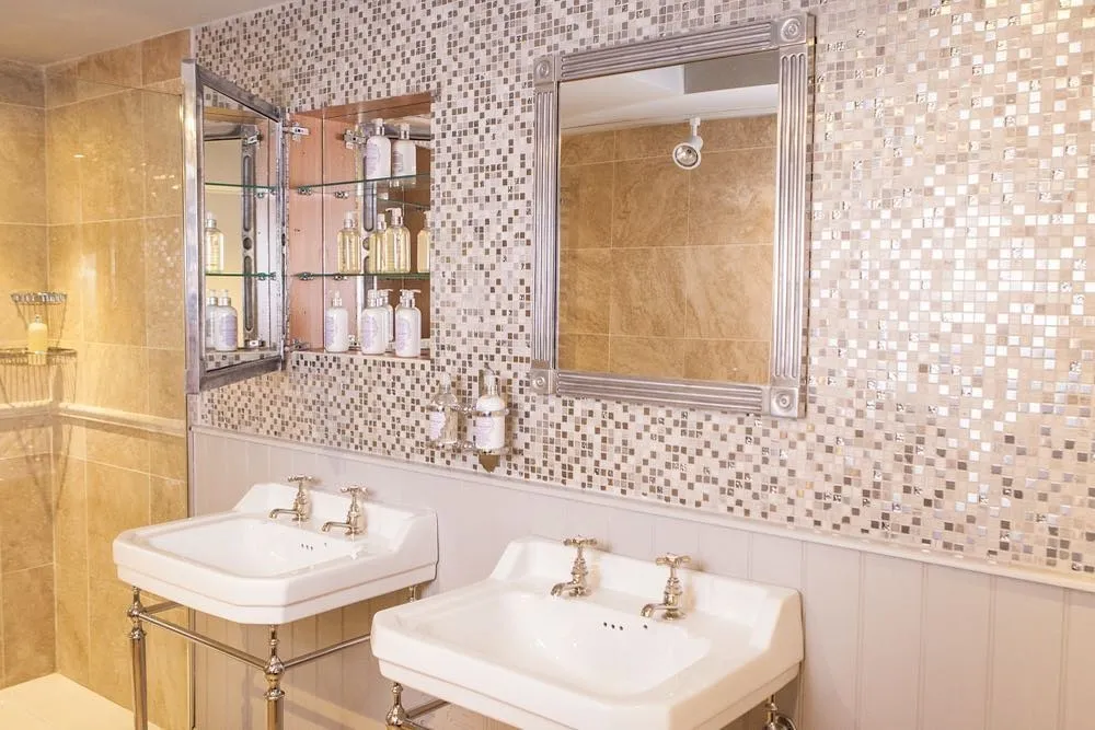 Зеркало с отделкой из мозаики смотрится просто восхитительно