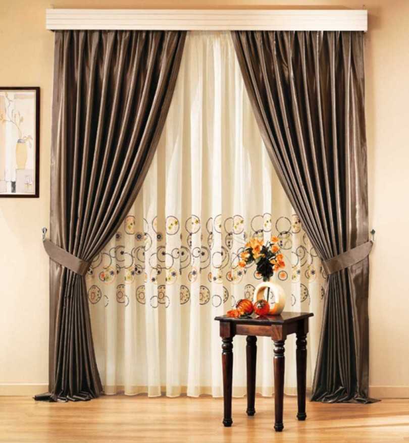 Великолепно и стильно смотрится гостиная с плотными портьерами, присборенными подхватом (завязки из того же материала) и закрепленным широким бантом. Беспроигрышным будет классический вариант фиксаторов в виде аксессуара с кистями, из ажурной текстильной полосы. Другое классическое решение по оформлению портьер – толстый витой декоративный шнур с роскошными кистями. Полотно будет драпироваться красивыми складками.