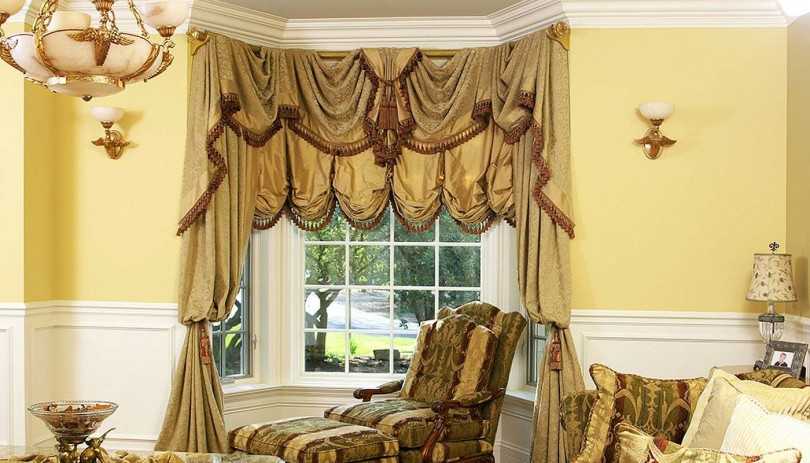 Классика и барокко приветствуют тяжёлые и дорогие ткани для декора штор (атлас, шёлк, бархат). Говоря об украшениях, уместным будет использование ламбрекенов, шнуров, кистей и вышивки золотыми и серебряными нитями.