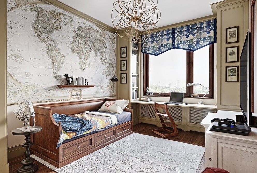 Когда маленький мальчик превращается в молодого парня, для него крайне важно иметь личное пространство, которое бы отражало его индивидуальность. В этом возрасте у детей уже есть свои увлечения, кумиры и хобби. Используйте их, как основу при создании дизайна интерьера