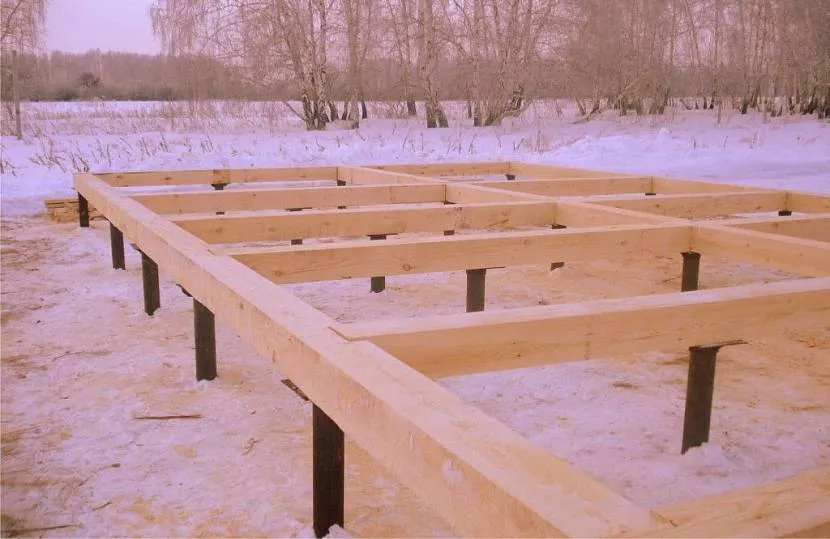 Нижняя обвязка каркасного дома на столбчатом фундаменте