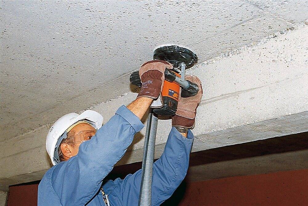 Очень сложные участки, никак не поддающиеся удалению подвергают обработке различными электрическими устройствами. Одним из них является простой отбойный перфоратор. Закрепив в гнездо насадку-зубило, пройдитесь по сложному участку удаляя слой за слоем. Прекрасным вариантом является болгарка. Поставив отрезной алмазный круг, пройдитесь по обрабатываемой площади делая маленькие надрезы. Расстояние между ними должно быть 3-5 см. После просто удаляйте участки между бороздками шпателем. Когда стоит очень сложная задача по зачистке, прибегают к специализированной технике, к ним относится шлифовальная машина по удалению штукатурки. Так же есть пескоструйные установки которые вымывают все лишнее с поверхности стены.