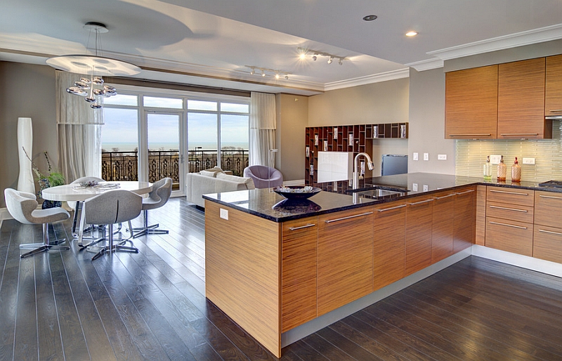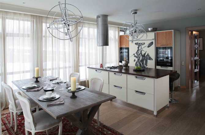 При наличии барной стойки необходимость в столе обеденном отпадает Для небольшой кухни отлично подойдет стойка, выступающая одновременно и рабочей поверхностью: