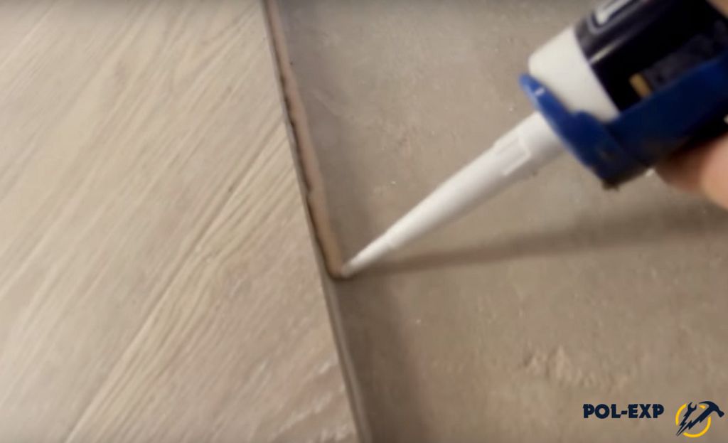 Так как состыковать линолеум и плитку можно и безо всяких приспособлений, то для этого прекрасно подойдет обычный герметик.