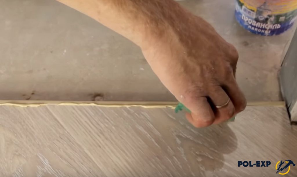 Так, как соединить швы линолеума в домашних условиях, если сверлить пол нельзя? Остается только приклеить порожек! Автор следующего видео утверждает, что для этого нужно использовать герметик, или силиконовый клей, но никак не «жидкие гвозди».