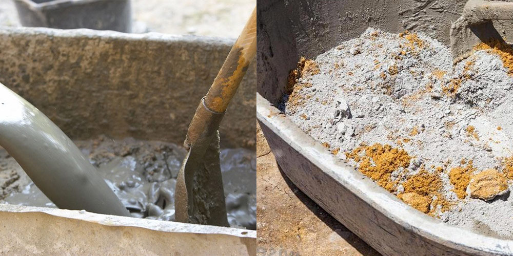 - Нужно знать, как правильно разводить цемент и другие компоненты: сначала смешиваются все сухие субстанции, потом вода добавляется небольшими порциями, чтобы была возможность контролировать густоту смеси и добиться идеальной консистенции.