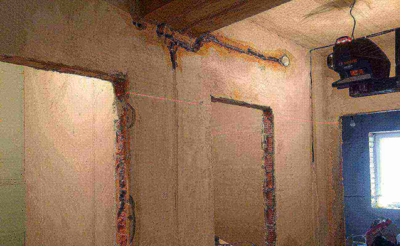 Для сужения проёма по высоте следует произвести такие же расчёты, как и по ширине. Далее необходимо очистить поверхность стен, удалить старые материалы до основания.