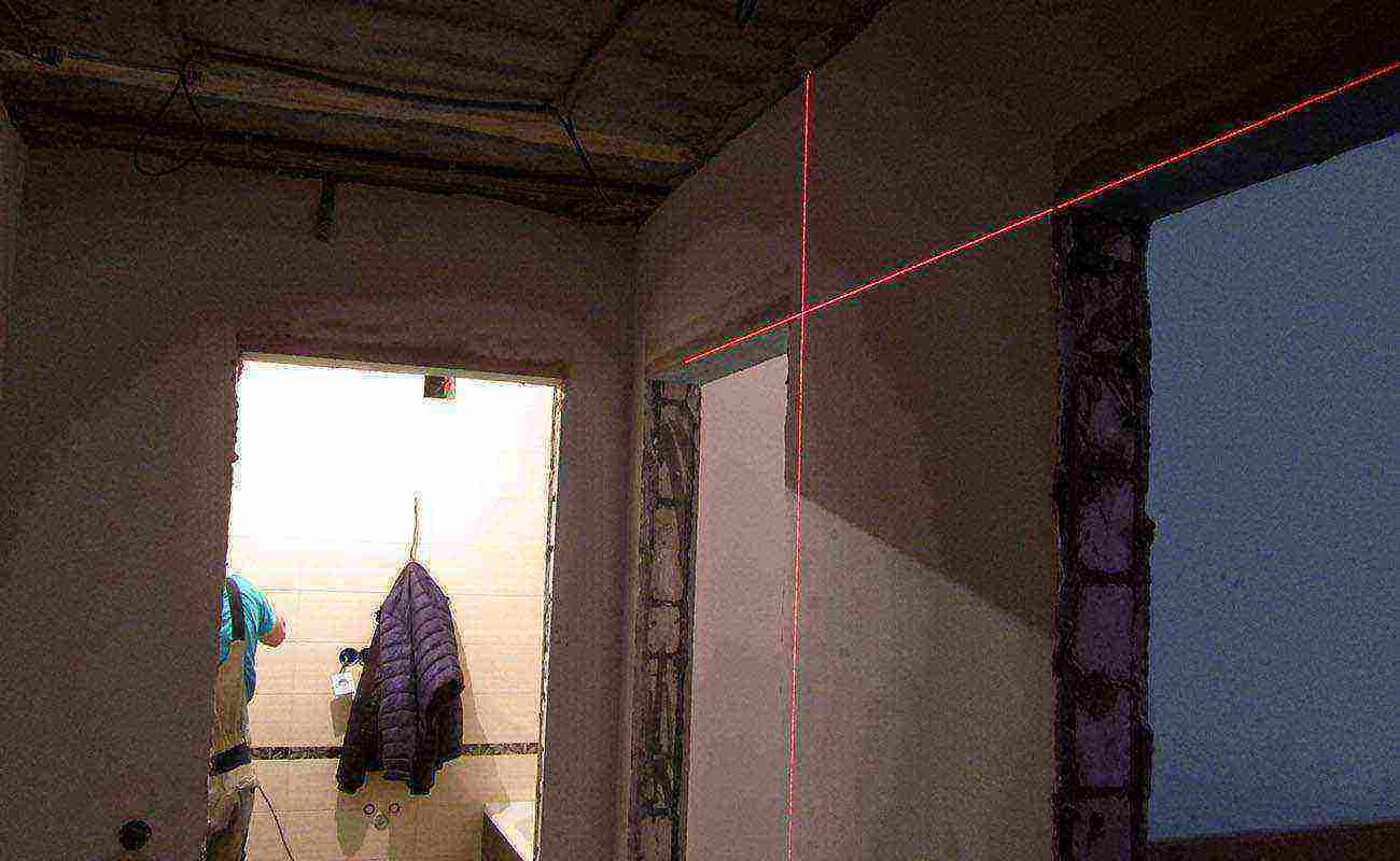 Для разметки в качестве вспомогательного инструмента можно использовать алюминиевое правило, деревянную рейку или длинный уровень. Инструмент прикладывают к стенам по бокам от дверного проема и отбивают линию. Такую процедуру проводят и с другой стороны. Эти линии будут ограничивать гипсокартонную обшивку, которая не должна выступать за границы основных стен. А также перпендикулярно отметкам нужно отбить линии, которые ограничат ширину входа