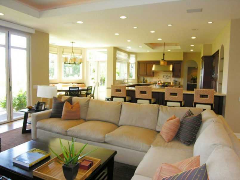 Для гостиной вариаций может быть больше. В этой комнате члены семьи собираются, чтобы расслабиться и провести досуг. Поэтому отталкиваться можно не только от практических соображений, но и просто от общих предпочтений. Главное, чтобы все всем нравилось.