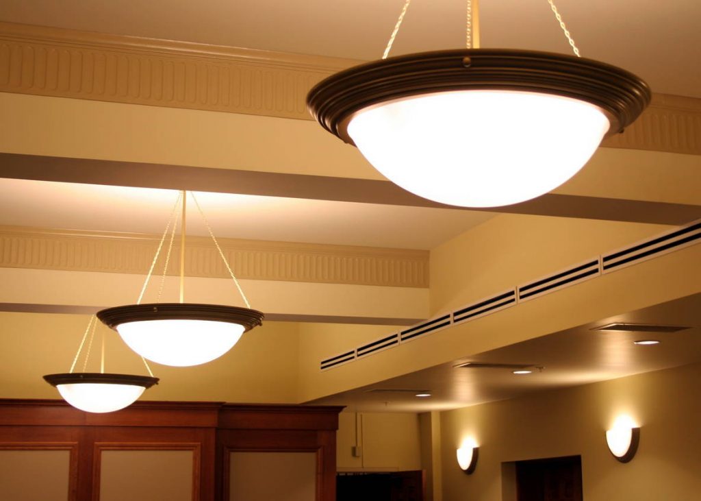 Как правило, это люстры различным количеством лампочек. Главное условие такого освещения это обеспечение отсутствия зон теней.