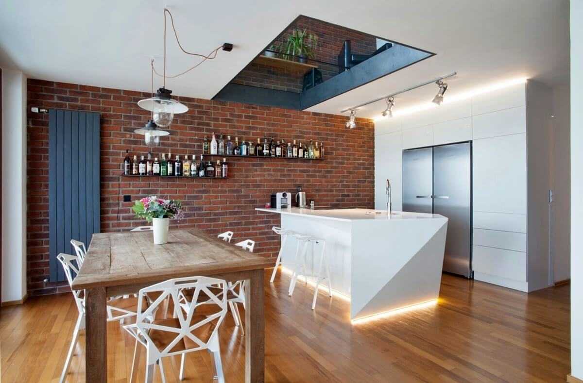 Не очень мощная, тёплого цвета диодная лента прибавит полутеней и рельефа помещениям — лофт, сделает нрав этого стиля несколько мягче и уютней.