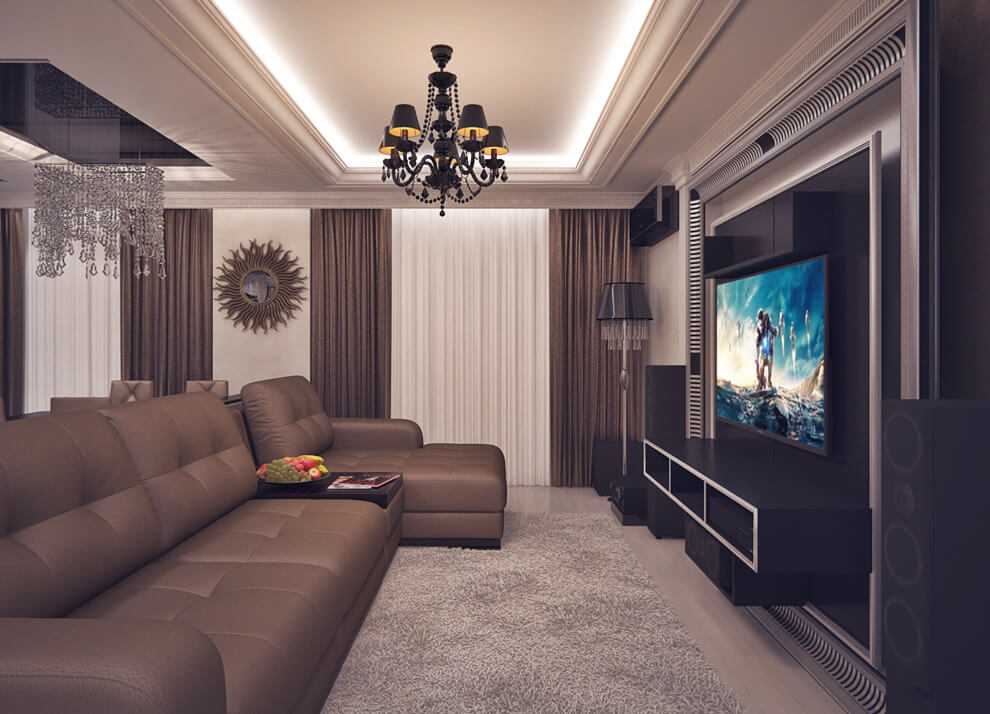 Мягкое свечение светодиодов делает их идеальными для оформления гостиной. Особенно если в этой комнате есть многоуровневый потолок. Конструкции из гипсокартона словно созданы для того, чтобы их обыграли с помощью встроенной светодиодной подсветки. Причём модель можете выбрать на свой вкус: от аккуратных и совершенно незаметных лампочек до экстравагантных светильников с оригинальными плафонами.