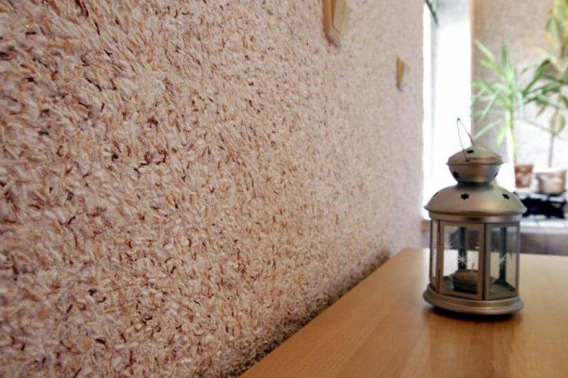 - шероховатой. Не нужно забывать, что с гладкой поверхности жидкие шпалеры сползают.