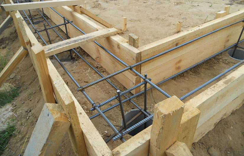 Прутки связываются между собой вязальной проволокой, с помощью специальных крючков. Каркас должен иметь верхний и нижний арматурный пояс, соединенный между собой стойками, из таких же прутьев. После этого устраиваем деревянную опалубку с внутренней и наружной стороны котлована.