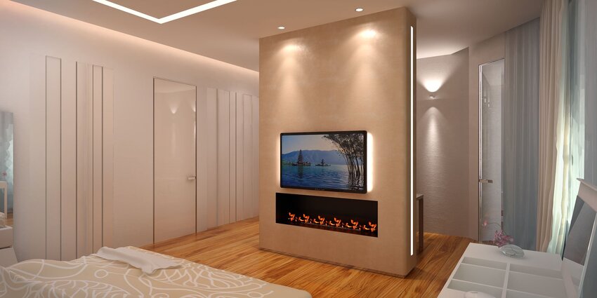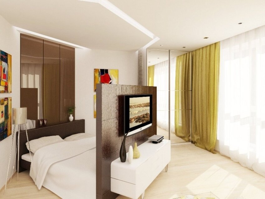 Как разместить телевизор в спальне так, чтобы его не было видно