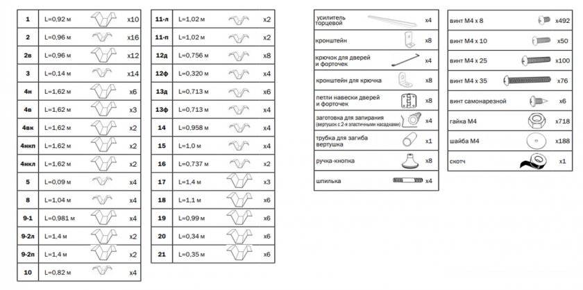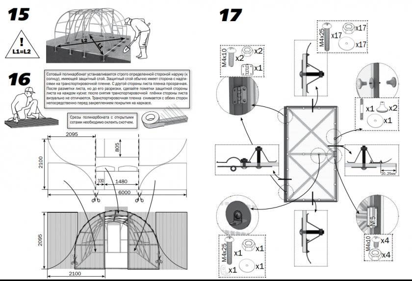 - Полная комплектация: от гаек до листов поликарбоната.