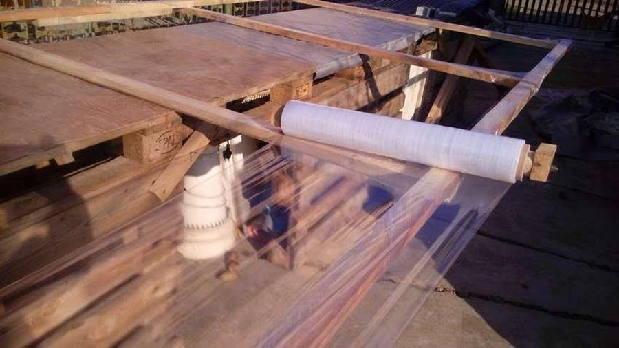 - Пленка. Это наиболее экономичный вариант, он отлично подойдет новичкам, так как пленку не жалко испортить и всегда можно купить еще. Такое покрытие прослужит всего один год и русскую зиму точно не выдержит. На зиму хорошо сохранившуюся пленку можно снять и убрать, а следующей весной натянуть снова. Такое покрытие наносится очень просто, пленку нужно натягивать и закреплять последовательно с одной стороны на другую. Необходимо позаботиться о дополнительном уплотнении в местах наибольшего натяжения пленки.