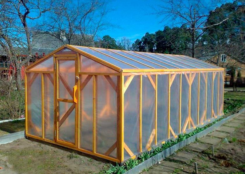 Однако прослужит она всего один сезон, поскольку может не выдержать тяжести снега и зимних морозов. Поэтому пленкой деревянные теплицы перекрываются ежегодно. С таким материалом днем в теплице слишком жарко, а ночью она быстро охлаждается.