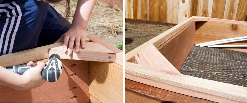 Древесину требуется укрепить с помощью саморезов и гвоздей. Благодаря такой фиксации, парник прослужит гораздо дольше.