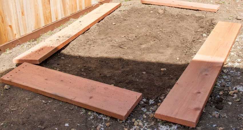 Подготовка территории к установке парника включает в себя расчистку участка от травы и мусора, а также закладку фундамента. Для теплицы отлично подойдет ленточный фундамент, но также можно выложить площадку кирпичом, камнем или блоками. Еще проще – использовать для этой цели брус или доски размером 50×100 мм или 50×150 мм, в зависимости от размеров парника.