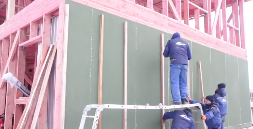 - В каркасном домостроении он используется для внутренней и внешней обшивки.