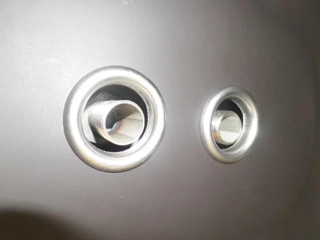 - прожигают два отверстия и вваривают в них патрубки для соединения с внешней емкостью. Требования к сварным швам прежние — герметичность и отсутствие отверстий.