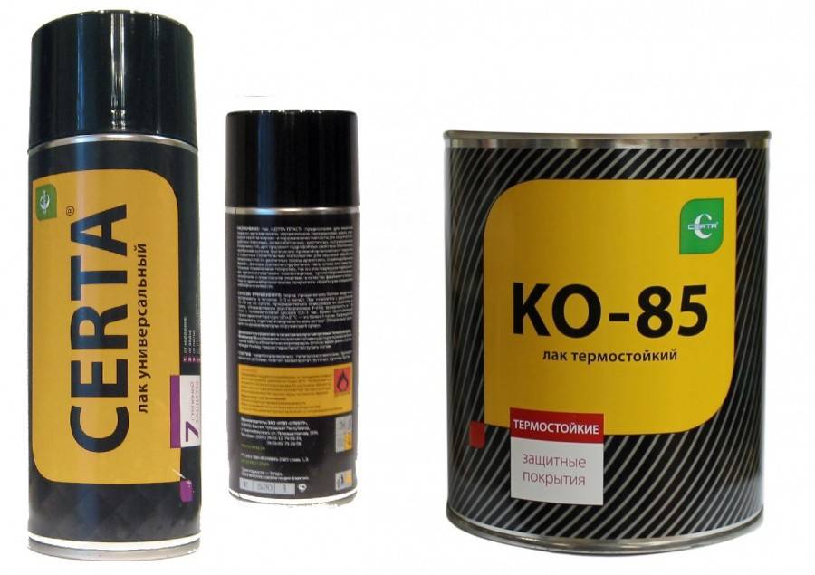 Лак фирмы Ко85 также справляется с поставленной задачей. Для защитной функции требуется нанести до 6 слоев. Он быстро сохнет и не выделяет резкого запаха. Покрытие выдерживает до 200 градусов.