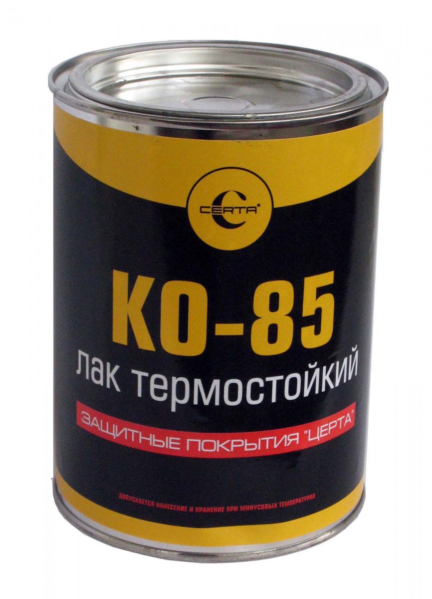 Составы марки КО-85. Работают при температуре от -40°C до +300°C. Находят применение в быту и на производстве (при окрашивании трубопроводов, например). После нанесения лак быстро сохнет, образуя глянцевую защитную пленку светло-коричневого цвета. Срок службы продукта составляет примерно 10 лет.