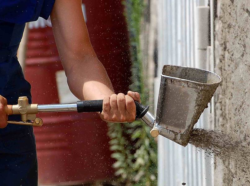 Перед началом работ на оштукатуриваемую поверхность следует нанести обрызг из жидкого рабочего раствора. После его схватывания (1 – 5 часов) в два-три слоя, в зависимости от марки смеси и толщины, наносится терразитовый грунтовой слой. Грунт разравнивают и уплотняют легкими ударами полутерка или правила. Далее наносится покрывной слой.