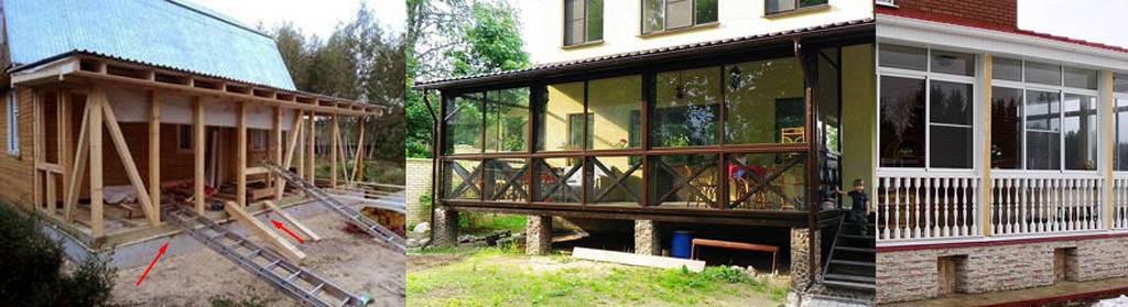 Во всех случаях следует помнить, что для участка используется отдельный фундамент, который имеет точки крепления в основании жилого дома. Таким образом, образуется надежное сцепление двух платформ между собой.