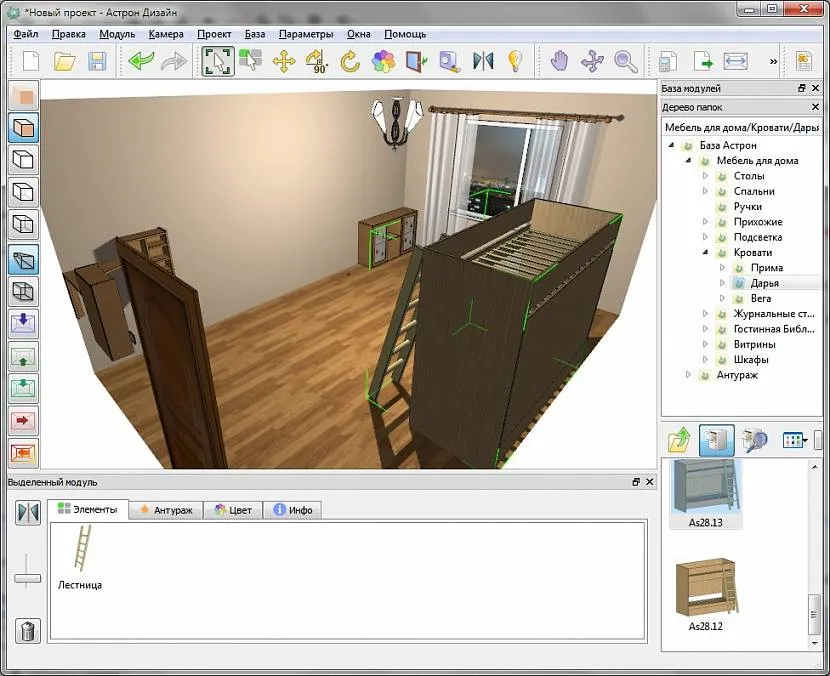 В программе предустановлено большое количество текстур плиток, ламината, обоев, дверей и прочих элементов. Помимо этого, здесь встроено также достаточное количество мебели и других объектов, которые сделают ваш интерьер более приятным и естественным.