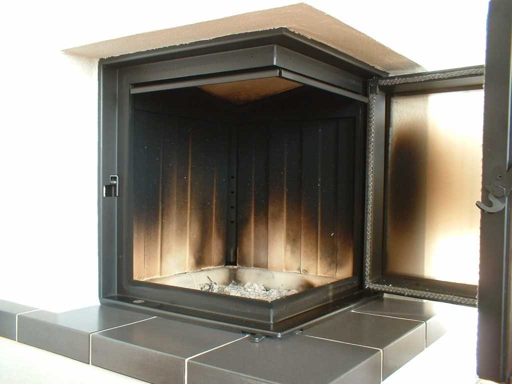 Если вы выбрали угловой вариант топки со стеклом, то учтите, что в нём расположены три стенки, поэтому ставить его нужно только в углу комнаты. По теплоотдаче такие топки считаются самыми мощными.