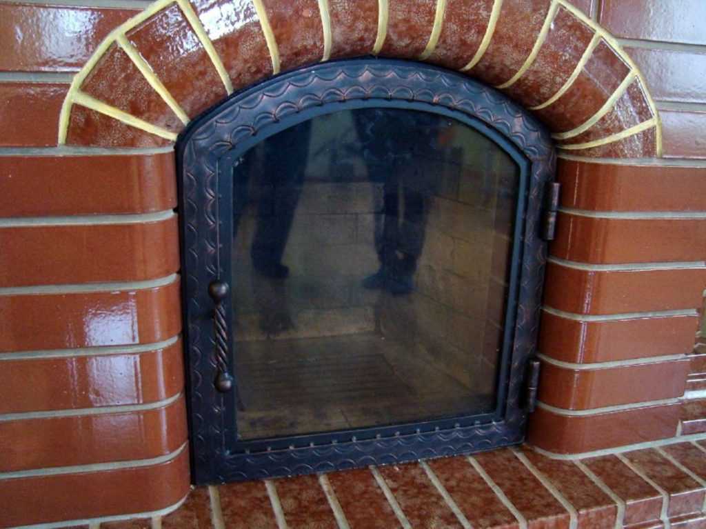 Дверь для печи может иметь разную конструкцию, например, металлическую рамку со стеклом. Крепление на печи происходит с использованием штифтов или же скоб. Стекло монтируется такое, чтобы могло выдержать высокие температуры. Его крепление съемное, чтобы в случае повреждения с легкостью можно было провести замену на новое.