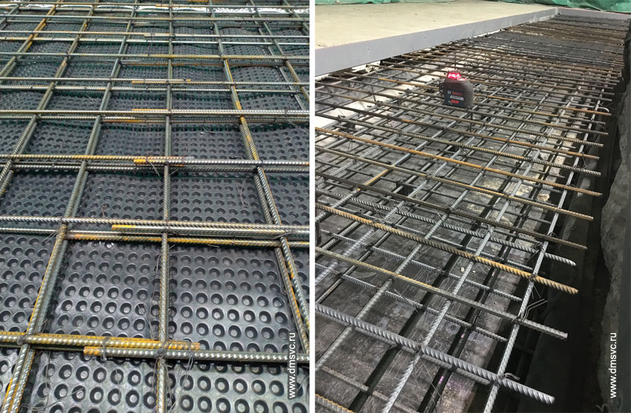 - Арматура укладывается в 1 или 2 уровня, в соответствии со схемой и вся сетка устанавливается на специальные пластиковые опоры.