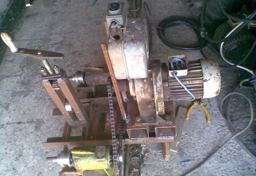 Но это, если не использовать электрический привод. Хотя есть интересные схемы с использованием электродвигателей — надо только добавить редуктор и предусмотреть безопасную эксплуатацию (в том числе от поражения электрическим током). Такой привод обычно делают люди, которые постоянно используют эту операцию в силу профессиональной деятельности.