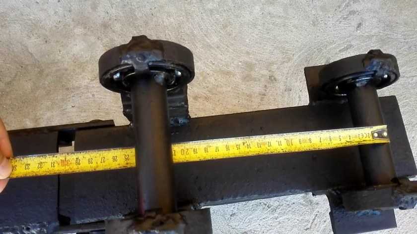 Шаг второй. Приварите валы к готовому каркасу. Два по бокам, в то время как под третий требуется заранее подготовить опоры. Вал будет крепиться к последним.