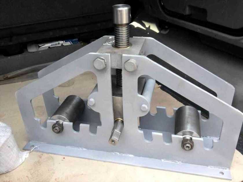 Преимущество инструмента заключается в том, что мастеру не нужно прикладывать физическое усилие. Последнее создаётся за счёт гидравлики. Вместо цилиндра можно применить и простейший домкрат.