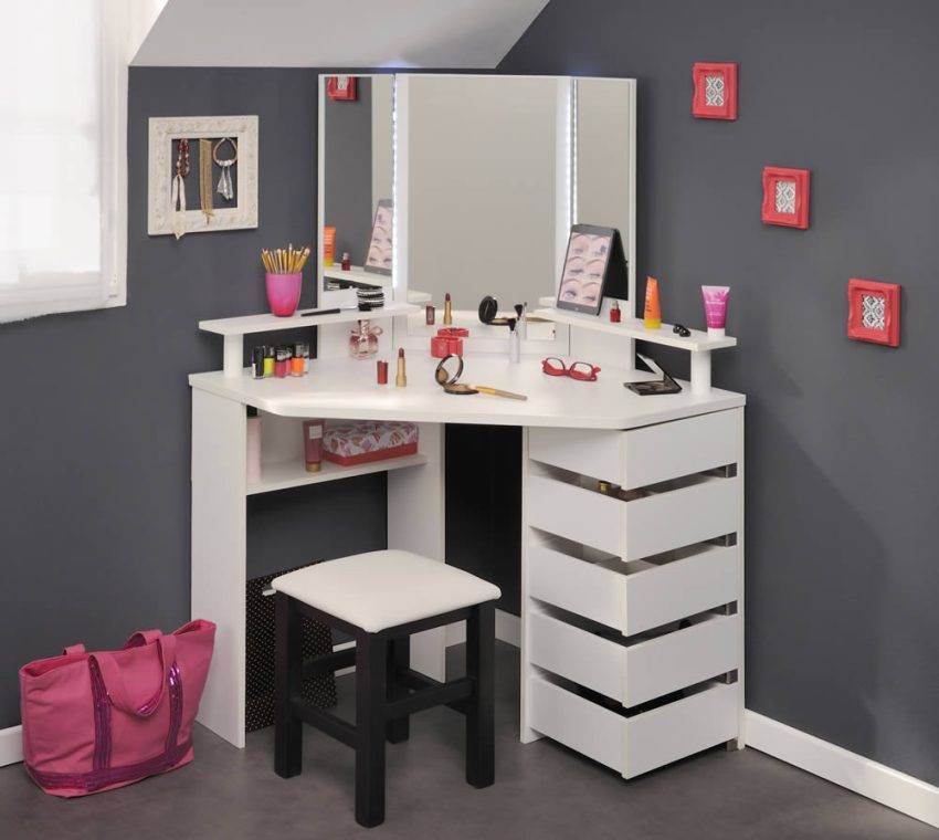 Еще раз обратим ваше внимание на присутствие адекватного освещения места для накладывания макияжа. В зоне туалетного столика вешают два-три точечных светильников и один основной, который будет использоваться больше для красоты или освещения в дневное время