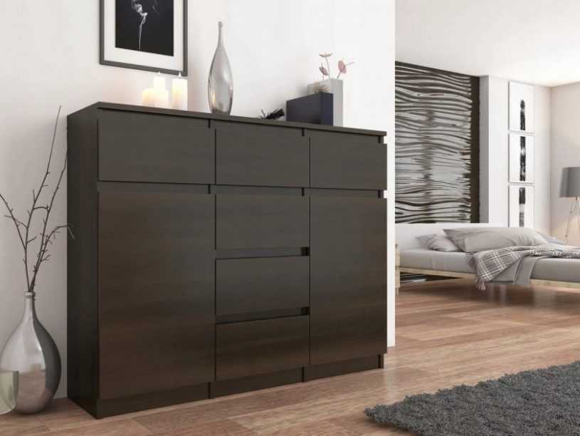 Материал для изготовления современных комодов разнообразен: дерево, пластик, стекло, ДСП и МДФ плиты. Довольно часто материалы изготовления комбинируют между собой. Для изготовления каркасов и фасадов комодов чаще всего используется натуральная древесина: дуб, вишня; орех; клен; сосна, лиственница, осина.