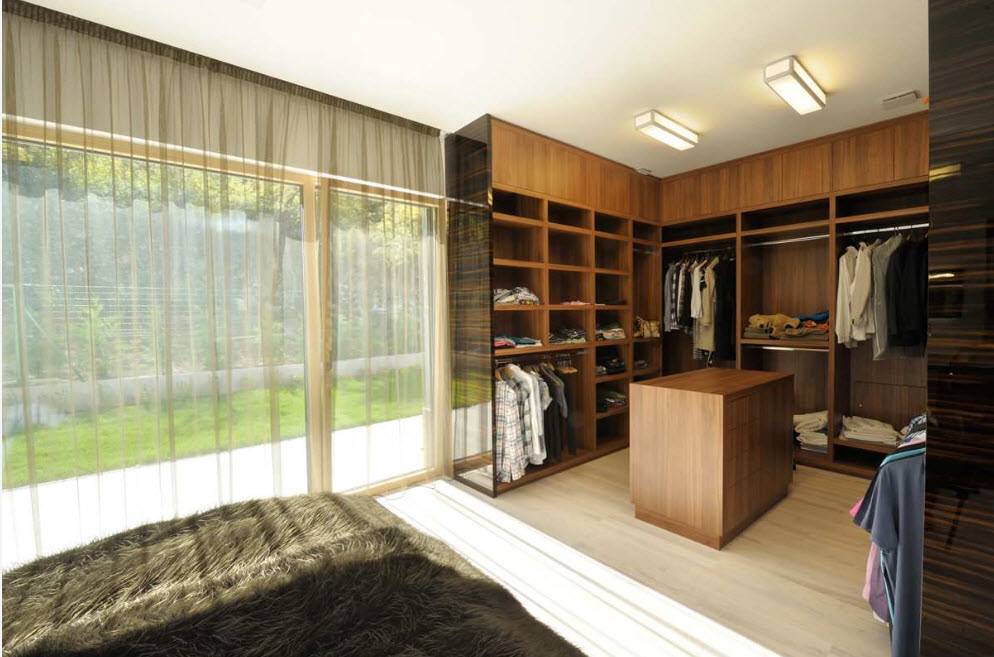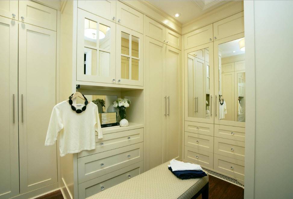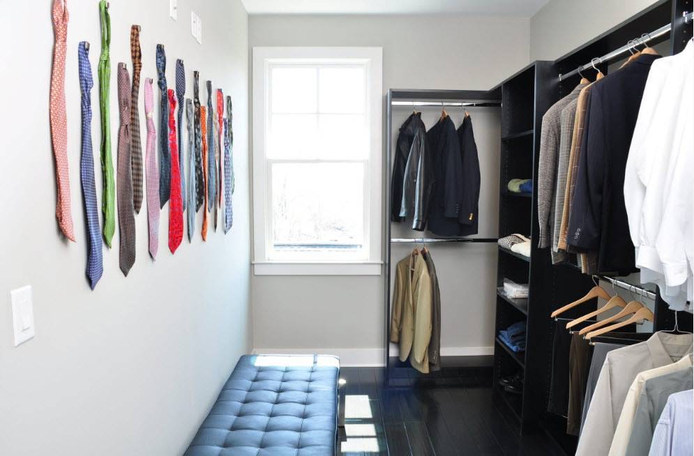 В эту комнату можно установить большой гардероб. Но это отличное решение только в случае, если спальня имеет большую площадь. В нём можно разместить любую одежду, бельё, а также постельные принадлежности. Это очень удобная и функциональная вещь с разнообразным наполнением.
