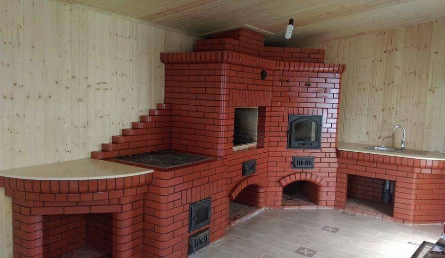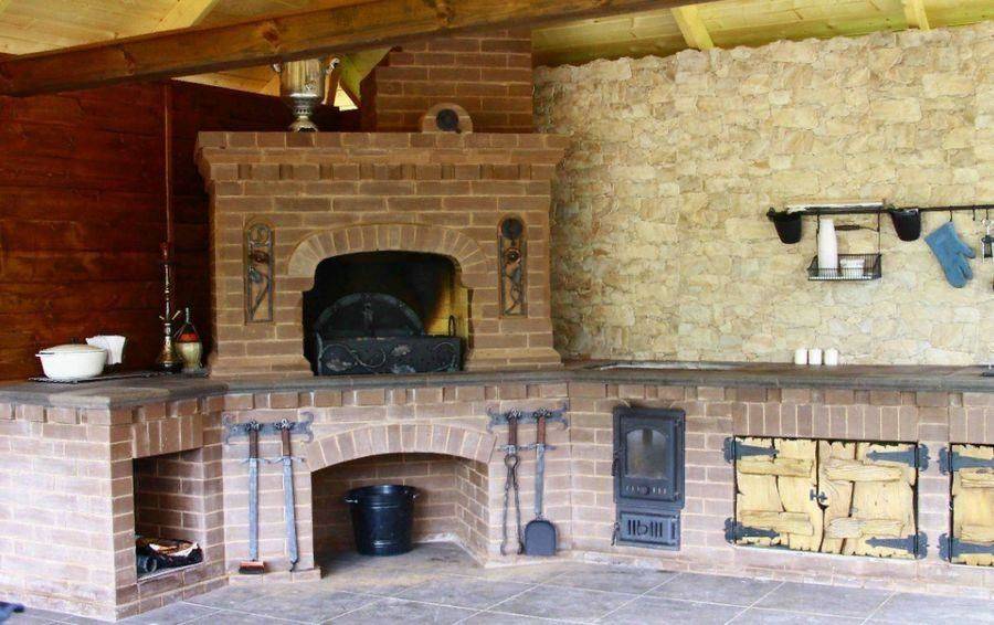 В таких печах можно приготовить большое и разнообразное количество блюд, разных национальностей, современные решения позволяют, встраивать в печь, любые плиты и емкости под готовку. Очень удобно, когда рядом подведена вода и установлен умывальник, это является неоспоримым плюсом нашего времени.