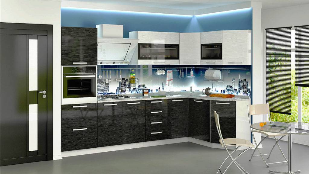 - авангардный. Такие угловые кухни производятся в модных направлениях данного времени, характеризуются необычностью и непривычностью форм, применения неординарного декора, ярких аксессуаров;
