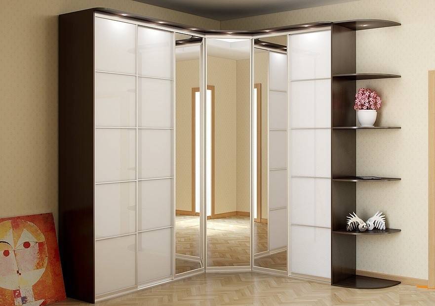 Труднее всего обыгрывать в интерьере чистый белый цвет встроенной мебели. Это проще сделать в спальне или в ванной комнате. Угловой шкаф с зеркалом — практичный и недорогой предмет мебели, который подойдет для любого помещения. Многообразие видов дизайна и конструкции данного изделия позволяет каждому найти для себя наиболее подходящий вариант.