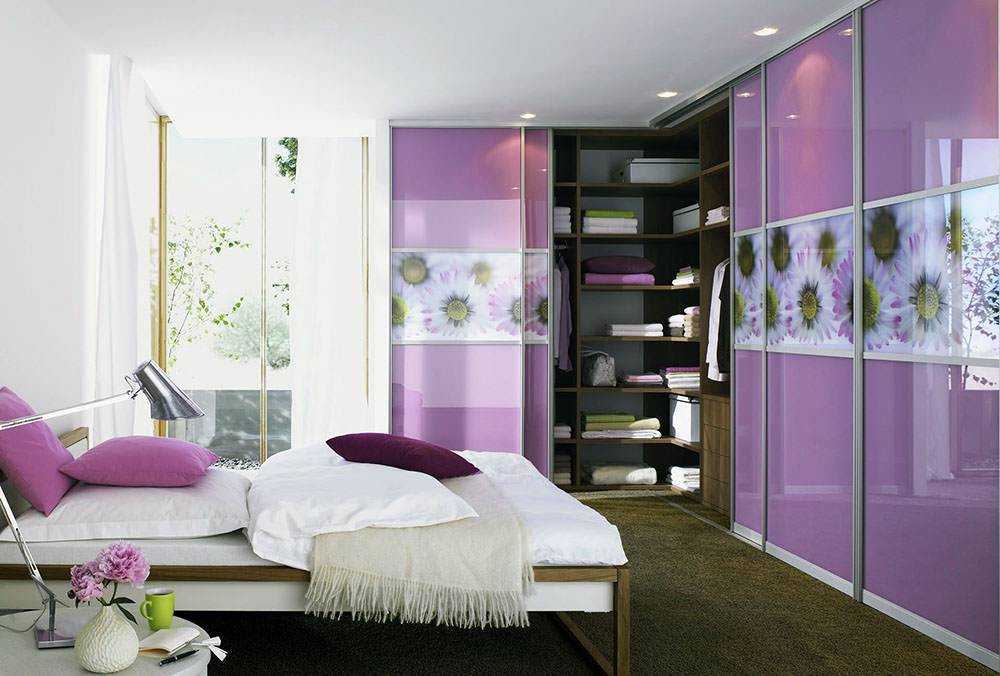 Зеркальные поверхности шкафов-купе визуально увеличивают помещение, также оно становится светлее. Такое оформление актуально для спален в стилях хай-тек, модерн, минимализм. Для оригинальности фасады шкафов-купе делают наборными из отдельных полотен (квадратными, прямоугольными, треугольными), а зазоры заполняют специальными перемычками или окрашивают. Также на мебель можно нанести рисунок, тонировку.