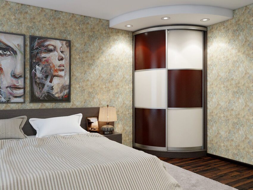 Представляют собой оригинальное дизайнерское решение. Дверцы полукруглой формы позволяют шкафу идеально вписаться в интерьер спальни, например, оформленной в стилях арт-деко или ампир. Смотрятся достаточно эффектно. При выборе такого варианта предпочтительна установка кровати с округлым изголовьем.
